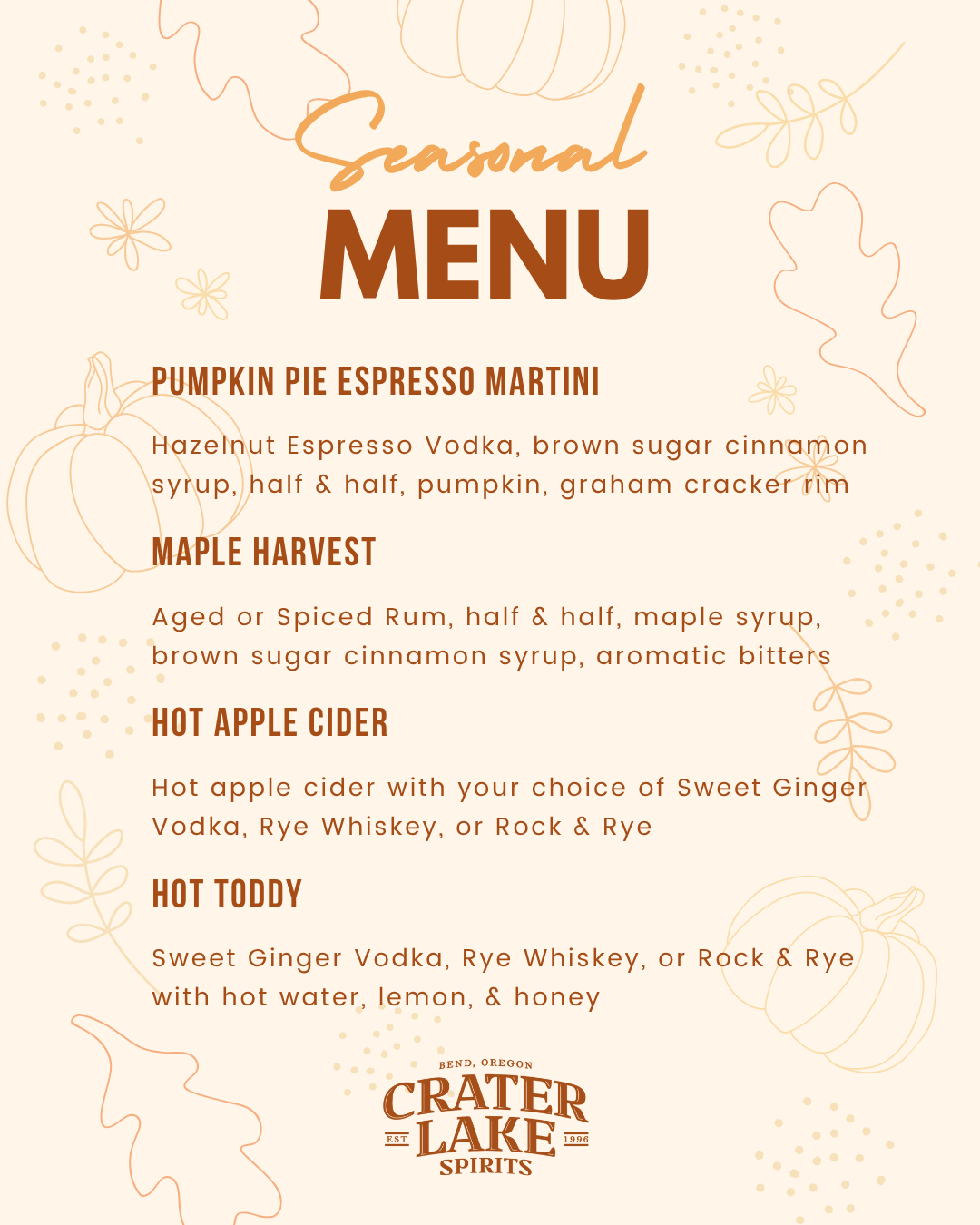 Enjoy expertly crafted cocktails made with your favorite Crater Lake Spirits.